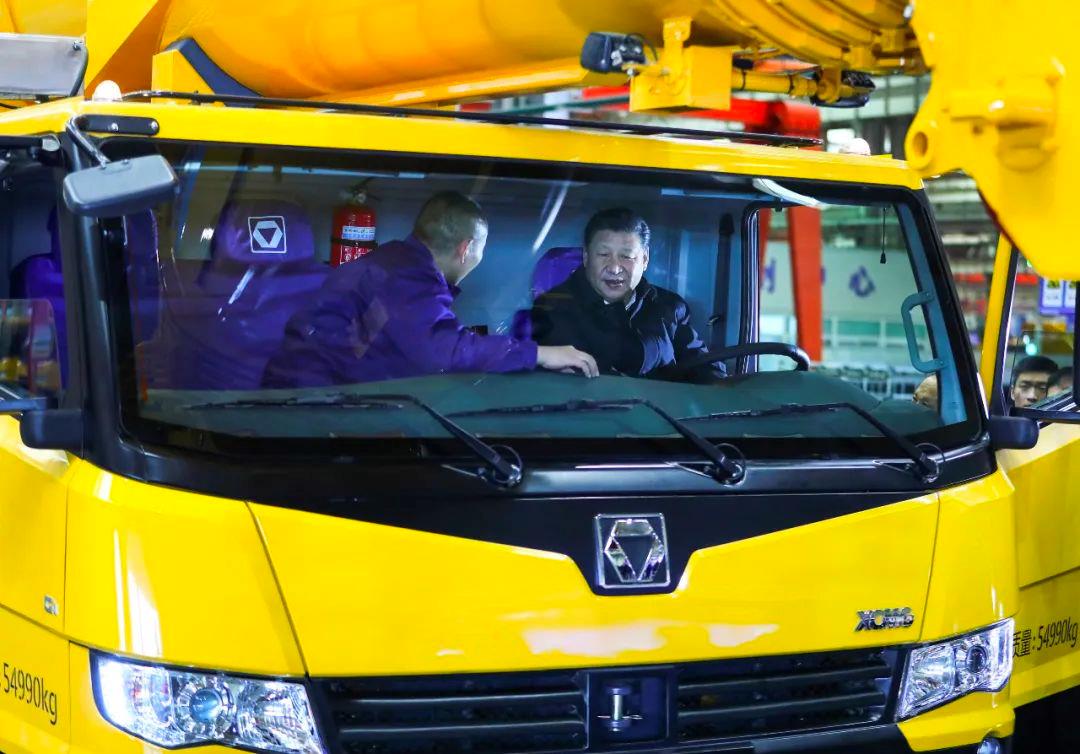 △2017年12月12日,习近平总书记在江苏徐州徐工集团坐进刚下线的XCA220型全地面起重机驾驶室,向技术人员详细询问起重机的性能、产量、价格等。 近年来,徐工集团自主研发的多种重型机械市场占有率名列前茅,产品销往世界。徐工探索的国际化不仅体现在销售与服务,还包括大力拓展投资布局。在德国、美国、印度、巴西等国家的投资,让徐工集团已基本构建国际化产能布局。