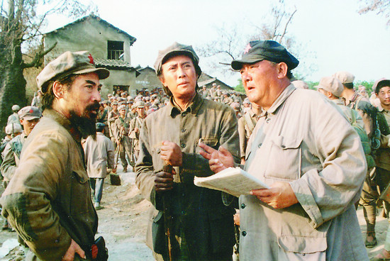 翟俊杰(右一)在《长征》拍摄现场为演员说戏 记者:您曾三次拍摄长征故事——《金沙水拍》、《长征》和《我的长征》,为何如此钟爱这一题材? 翟俊杰:首先,长征体现了人民军队义无反顾的革命理想和信念;其次,长征是中华民族美德的集中体现——团结一心、众志成城、坚忍不拔、不怕牺牲、团结友爱;第三,长征也是对人类体能极限的一种挑战——饥饿、寒冷都没有打败红军。在种种艰苦之中,这种长征精神是一座屹立不倒的丰碑,是一笔宝贵的精神财富。这笔财富甚至是属于全人类的。 长征精神并不是口号,而是一段血与泪的故事,是不断激励着我的精神力量。我要通过电影将这种情怀艺术化地表达出来。拍长征、学长征,三拍《长征》也是电影人以身作则发扬长征精神的过程。第二次拍《长征》时,我带着演员重走长征路。我告诉他们,脱掉时髦的名牌服装,在荒山野岭中体验艰苦生活,这种都市生活和艰苦环境的巨大反差能让你们更贴近所扮演的人物。 记者:您的主旋律影片总是在表达主题的同时多增新意,获得观众广泛好评。在您看来,主旋律电影如何做到思想性、艺术性、观赏性相统一? 翟俊杰:主旋律电影应当艺术化地传播正能量,想尽办法增强影片的艺术感染力。中国电影应艺术化地、形象化地来表达这个伟大时代。艺术作品要有吸引人的中国故事内核与充满感染力的艺术形式。比如《这里的黎明静悄悄》描写了苏联年轻女兵的战争悲剧,如果不是战争,这些女兵可以结婚生子,但是法西斯战争毁掉了她们的生活。什么叫做悲剧,把美好撕碎给人看就是悲剧。这种悲剧,就是艺术感染力的一种体现。 观众不可能牢牢记住电影的每一分钟,但是影片中生动感人的鲜活细节越多,越能够感动观众,一部作品成功的系数越大。《血战台儿庄》中,一个老兵蹲在战壕里思乡,折下一段嫩柳枝,做成柳哨,吹出《走西口》的调子,最后把集束手榴弹绑在身上和敌人的坦克同归于尽。这样来自生活的艺术细节,对塑造人物形象有很大的好处。 “电影要由产量的繁荣向质量的高度发起冲击” 记者:您以一部部优秀作品见证了中国电影成长的四十年。在您看来,改革开放四十年后的今天,中国电影取得哪些成就?有哪些不足? 翟俊杰:中国电影从题材、制作都取得长足的进步。在取得成绩同时,更要看到不足,百尺竿头更进一步。如何克服不足,创造新的辉煌,这是一个重要的命题。我认为,要警惕泛娱乐化、功利浮躁的不良倾向。 提高文化产品质量,要由产量的繁荣向质量的高度发起冲击。讲好中国故事,要坚决继承优秀的中华民族传统,大胆吸收先进的艺术理念。目前我们可以凭借数字技术制作具有视觉冲击力的画面,但关键还需要丰沛的艺术想象力,避免千篇一律。增强影片的想象力与感染力,吸引广大人民群众自发参与审美。