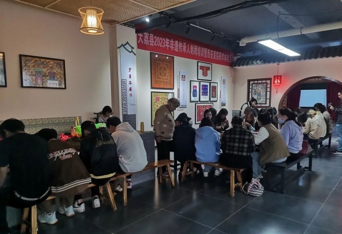 文化艺术网-文化艺术报讯(全媒体记者 高盼成 通讯员 王伟 赵瑞晴)为贯彻落实《“十四五”文化和旅游发展规划》,进一步加强大荔县非物质文化遗产保护传承工作,10月9日-12日,渭南市大荔县文化馆在该县非遗展览体验馆举办了“大荔县2023年非遗传承人刺绣培训暨西安美院研学体验活动”,活动聘请了聂秀芳和王丹两位省、县级非遗传承人为来自西安美院的32位师生进行了为期4天的培训。
