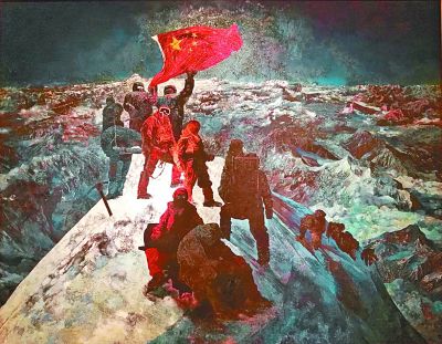 放飞梦想(中国画)张琳 高亢嘹亮的国歌响起,鲜艳的五星红旗迎风飘扬。无论是在奥运健儿夺冠的颁奖典礼上,还是在青春飞扬的校园升旗仪式上,我们常常能看到这样激动人心的一幕。国旗,是国家的象征,是民族精神的图腾,她飘扬在新中国成立以来许许多多重要的瞬间,飘扬在每个中华儿女的心头。在描绘新中国发展新貌、人民生活图景的丹青佳作中,也经常能看到那方红艳艳的国旗,她点亮了画面,也引燃人们充盈于心的激情。 五星红旗迎风飘扬,胜利歌声多么响亮 1949年9月27日,中国人民政治协商会议第一届全体会议通过《关于中华人民共和国国都、纪年、国歌、国旗的决议》,宣布中华人民共和国的国旗为红地五星旗,象征中国革命人民大团结。 10月1日,开国大典上,毛泽东主席按动电钮,瞬间,新中国第一面巨幅国旗如一轮红日般冉冉升起。 在董希文所绘的油画《开国大典》上,天安门广场上空一面五星红旗高高飘扬,下方的人群汇成了欢乐的海洋。一面红旗,升起了中国人民当家作主的骄傲,映照着新中国无限美好的未来。 蒋兆和创作的《中国人民从此站起来了》,画作题款显示创作于“中华人民共和国诞生之日,一九四九年十月一日”。画面是两位劳动人民的形象,女性手持镰刀,男性双手紧握旗杆,画面上方近1/2的空间,是一面迎风猎猎招展的五星红旗,纪念碑式的整体构图,令人感受到新中国成立之际人民心中的舒展、愉悦、自豪之情。 “线儿长针儿密,含着热泪绣红旗绣呀绣红旗。”五星红旗是中华人民共和国的象征,无数革命先烈为了人民的解放抛头颅、洒热血,用鲜血染红了旗帜,换来新中国的诞生。以《红岩》中江姐及难友们解放前夕在牢狱中绣制五星红旗为主题的绘画作品,如李汇泉的《绣红旗》、李跃进的《解放前夜·绣红旗》、卢志强《绣红旗》等画作,都表现了革命先辈憧憬美好新中国、矢志不渝的坚贞情操。 你的名字比我生命更重要 “国旗国旗真美丽,金星金星照大地,我愿变朵小红云,飞上蓝天亲亲您。”一首童真的歌谣,唱出朴素真诚的情感。了解国旗、尊敬国旗、热爱国旗,是每个小学生的入学课,国旗教育也是每个公民的必修课。 在新中国成立初期一直到二十世纪七八十年代发行的新年画和宣传画中,有许多礼赞国旗的作品,如上海教育出版社发行的《尊敬国旗》、人民美术出版社发行的《热爱祖国》、少年儿童出版社发行的《国旗,像太阳一样红》、上海人民美术出版社发行的《尊敬国旗 热爱祖国》等。这些作品用简洁鲜明的形象,在一点一滴的潜移默化中,让国旗的情感符号烙印在每个人心中。 国旗是国家主权的象征。陆地边关,海上边防线,祖国领空……国旗高扬,便宣示着中华人民共和国主权的确立和不容侵犯。在柯如山的油画《雪域巡疆图》中,战士们顶风冒雪跋涉在空气稀薄的青藏雪原,一面鲜艳的五星红旗在茫茫雪山间格外醒目,这一抹鲜红,是整个画面的“画眼”,使得画面色彩对比强烈,把高原战士们不畏艰险守卫祖国边疆的精神无声地传达出来。牟达器、付巍巍、张贯一创作的油画《边境线上活界碑——魏德友》,表现了新疆生产建设兵团退休职工魏德友五十多年如一日扎根艰苦偏远地区巡边护边的感人形象,迎风招展的五星红旗如天边的红霞,照亮了祖国的边疆。在米巧铭根据王继才和王仕花夫妇坚守开山岛、守卫祖国海防线的感人事迹而创作的油画作品《孤岛卫士》中,王仕花手握旗杆,王继才正在向国旗敬礼,海天寂静,五星红旗映照着主人公伟大的心灵,灼灼闪耀。 国旗是中华儿女心灵的纽带。在表现和平解放西藏主题的作品,如韩书力的《高原祥云·和平解放西藏》、赵友萍的《百万农奴站起来》中,在描绘香港、澳门回归祖国,如廖宗怡、张树军的《1997·香港防务交接》,罗田喜的《使命—欢送驻港部队》,徐里、谭乃麟的《不忘初心,坚持“一国两制”,香港的未来一定更美好》,邢俊勤等的《澳门回归》中,在表现中华儿女一家亲,如李绍忠的《两岸同胞兄弟情》、王其钧的《身远心近》等画作中,五星红旗或在旗杆上高高飘扬,或在人们手中轻轻挥舞。一面国旗,牵动着炎黄子孙对祖国的爱与深情,当“我和我的祖国”歌声响起,当国旗在蓝天白云下舞动,祖国就在身边,那样生动,那样亲切。 五星红旗你是我的骄傲 有一种感动叫中国红,有一种骄傲叫五星红旗。 为国争光,挥洒汗水,让国旗在赛场上高高升起,是体育健儿的最高梦想。在表现奥运健儿夺冠场景的作品中,经常出现国旗画面。如李爱国的中国画《辉煌·奥运之星杨霞》,作者选用奥运金牌获得者杨霞擎举夺冠的瞬间作为画面主体,运动员身上的一面国旗在胸膛上闪亮,她在有力地宣告:“我是中国人,中国队赢了!” 驰骋江河,翱翔云天,让国旗伴随大国重器彰显国之荣光,是中国人的科技梦、强国梦。刘伟佳的《穿越江河湖海·中国奇迹工程南水北调》、黄坚的《中国梦·探月》、孙远志的《嫦娥三号》、毛珠明的《中国梦·嫦娥奔月》、庹光焰的《星月征途》、桑建国的《中国未来航母畅想》、时卫平的《极地科考·雪龙号驶进北冰洋》、范春晓的《中国制造走向世界——C919大飞机》等描绘我国重大发展成就的画作中,都有一个不可或缺的元素——五星红旗,她向世界传达着明朗的中国红、自信的中国红,这蓬勃的红色里,是