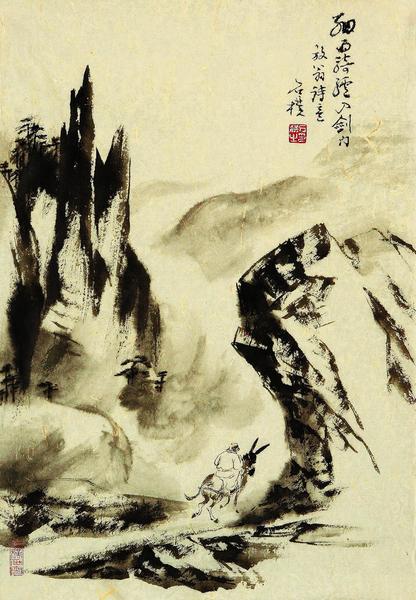 石朴《细雨骑驴入剑门》 ○林木 石朴,原名张新民,1950年生于陕西岐山。1988年调西安市任陕西省美术家协会秘书长;1993年拜杨仁恺先生为师;2009年西泠印社出版《石朴画集》。2010年海霞天地美术馆在国庆期间举办“长安隐者——石朴个人书画展”。2011年“长安隐者”——石朴作品展在陕西省美术博物馆举办。2012年8月,《石朴论画语要》由安徽美术出版社出版,全国发行。2014年6月,由第12届国展评审委员会副主任林木先生在《中国书画报》首版,以石朴作品为例,发表了“古意思辨”的理论文章。代表著作有《石朴论画语要》《石朴画集》等。 一、质沿古意 石朴是当代中国画界一特例。石朴没进过美术学院,就凭着对绘画本身的爱好,凭着对自我感受的珍惜,凭着对传统文化的热情,凭着因此而来的自学,学当代名家黄秋园,学陈子庄,再上溯宋元明清诸大家,学石涛,学石溪,学倪云林,加之如痴如迷地研习中国画学之哲理及画论,学书法,学诗词,学篆刻,学太极拳,竟把自己的绘画修练得让鉴定大师著名美术史家杨仁恺,著名美术史家、美术评论家薛永年、孙克们赞口不绝,称为奇人!当北京方面已在交口称赞,石朴家乡的画坛竟不知有此人!可见石朴之出世确有奇特之处。 与当今从美术学院学习而出的几乎全部国画家的成长方式完全不同,学院派的国画家是从西式教学入手的,一套从纯视觉的观察方式、传达方式、趣味模式入手的教学模式,让学生在从事中国画创作时很难摆脱若干西式绘画影响。石朴因为对中国传统文化情有独钟,没进过美术学院的他,学习中国画的方式是纯粹中国传统绘画的学习模式。他从临摹入手,学习前人的技法图式,他又学习书法篆刻,学习古典诗词的创作,其能力与手段,中国画的专业水准,远在学院派之上。学院派的人皆以创新为目的,从西方引入的这个“创新”在这一百年已成颠扑不破的公理,然而中国是个以古为尚的国家,凡涉古之词皆为褒辞:古雅、古厚、古朴、古老、古风、古拙、古道热肠……而“人心不古”则是世道衰颓之总称。今天受西方文化影响的中国美术界只知有创新,敢有尚古之称的人,不仅寥若晨星,且有保守落后之嫌。而从头至尾从民族传统文化中来的石朴,自自然然地公然宣称追逐古意。在一片创新的声浪中,这尚古之意就足以让石朴极为另类!当然,石朴不是一个复古主义者,“我说的传统古意是人文的精神,精神是要提炼的”。“我喜欢画得苍古一点,让人感觉到又古又新。新而有沧桑感,就好像你在一个古老的地方,有现代人在那里生活。我们去游览一个地方,看那个地方很古老,极具沧桑感,便能唤起我们的思绪。”对石朴,“古意”是种人文意义的追求。 石朴追求道的境界,追求中国古典诗词的意境,他在绘画中运用阴阳辩证的思维,他学画从临摹古人前辈入手而非静物石膏素描,他的论画题跋中的语汇是气韵、骨法、虚实、笔墨、风骨、神妙、淡宕……他的画中,更是到处充满着传统文化民族生活的意趣与神韵。当然,还有他的虚静阴柔的太极拳,他的潇洒灵动的漂亮书法,他的那些在自然天真宁静淡泊境界中的诗词……整个的石朴,就是中国传统文化的化身!这不奇怪,石朴可是中华文化发祥地岐山下周原的人!从小跟着在乡村行医的父亲,他走遍了周原地区的山山水水,黄土高原,住窑洞,登土塬,翻梁峁,跨沟壑,涉溪川,那里处处是地地道道的中华文化,那里在在都是石朴的记忆……我们今天的山水名家中大多为江南文脉的承传,至少为中国东部地区的所在,即使在古代,宋元明清的画家,亦无不是江南或东部发达地区人氏。古代山水画史名家中只有五代的关仝为长安(今西安)人,宋代的画家范宽是陕西华原(今陕西铜川)人,但这两位黄土地上出生的古代画家,他们也不画不入流的黄土高原。即使当代“长安画派”中人,其代表人物也非关中之人。而石朴不仅为关中之人,还是岐山下周原的人,还是从小生活在这片中华文化发祥地的普通人。请注意石朴出生地这个不同于几乎整个画史画家们的特点,这是我们考察石朴艺术的基础与出发点。 考察石朴艺术之所以要从他的出生地和他的生活环境出发,是因为石朴特别珍视自己的生活体验和感受,与别的那些与自己出生地关系不大的画家不一样,石朴总是努力地表达他所生活的环境带来的真实感受,而他的出生地与生活的环境却是古今中国画坛的画家们所从未真正体验过的独特环境。
