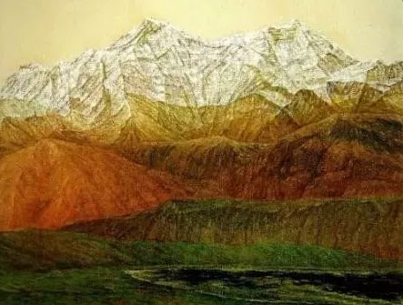 徐里先生的绘画风格具备独立的审美意识,尤其是他刻画雪域高原的人物态势,多以厚重的色块铺展出带有历史沧桑的背景,让人物在积淀成岁月的静态中活泛起来,他用虔诚的笔触涂抹出一种精神面貌。如果掀开徐里先生的作品,迎面而来的是悠远的灵魂悸动,那种以冷暖色彩对比的物象结构,给人以深入到古老而洪荒的文明隧道。品读徐里先生的人物作品,画面多数呈现出一种意象中的神秘感,而又采用温润的颜色牵动出人性内在的精神价值,让人物随着独立的审美意识表达出情感。在徐里先生的雪域高原人物作品中,可以感受到他以纯熟的笔法勾画出了民族韵味,他在给画面附加了抽象元素的同时,却生动的舒展开了一卷陈旧的时代回望。因西藏的神秘让徐里先生倾注了太多色彩,加上雪域高原独有的人情风貌与特性,在起伏的山川与沟壑间沉淀的历史痕迹,为艺术创作提供了丰富的素材营养。所以他采用细腻与抽象化的语境和技法,以温暖的色块组合出个性化图景,表达出了蕴含民族精神的物象审美。无论茫茫的雪山或大漠苍凉与风烟,以及匍匐朝拜的信众和淳朴民风,都浓缩在他独立的精神世界里,塑造出具有民族气息的笔韵景象,从而避开了欧式油画的老辣与厚度,形成了带有独特韵味的艺术风格。