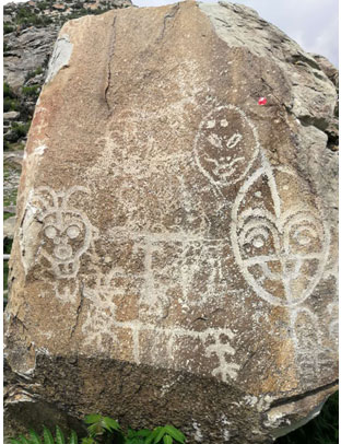 岩画,是上古先民原创的作品,是一种世界性的原始文化遗存。在文字未出现的洪荒时代,上古先民在深山岩壁或洞穴中,遗留下反映上古先民的思想观念,生活内容的图像符号。用来记录发生在生活中的事件,生存状态,在表达心声交流感情的同时也表达了他们的艺术素养和审美情趣。 岩画,是人类最早的文化遗迹,是最为古老的造型艺术。据文字记载,岩画的发现也正好开创了研究探索原始艺术的先河,也为研究原始艺术提供了实证,然而因历史原故,岩画却不被完全认同,而被尘封于原野荒漠之中,不能复存于历史时期的知识系统之中。岩画变成一种失传的文化,在史前文明这个大舞台上威武雄壮地演进过人类文明的一部图腾百科全书,竟然在浩如海的典籍中,少有记载,令人难知其梗概,也使得后世人探索岩画的奥秘而神往。 当专家、学者们在田野调查时,第一次发现岩画,看到岩画时的复杂心境,激动情绪,难以言表。从此有了岩画学科。由于对岩画的地理环境、历史文化背景尚未深入了解,对上古先民刻绘制作岩画的动机以及先民赋予岩画的内涵,目的都不完全研究清楚之前,只作尝试性的猜想,做粗浅的分析,简单的田野记录。抛开岩画的考古、宗教、社会、民族、符号等学科,单就岩画图腾的形式美、线条美,就足以让人震撼。