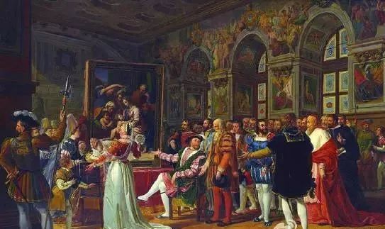 弗朗索瓦一世肖像 弗朗索瓦一世这位法国历史上最著名、也是最受戴的国王,一直便以他的多情和对于文艺的庇护而著称于世。 这样的场面,倒是符合他的人设。