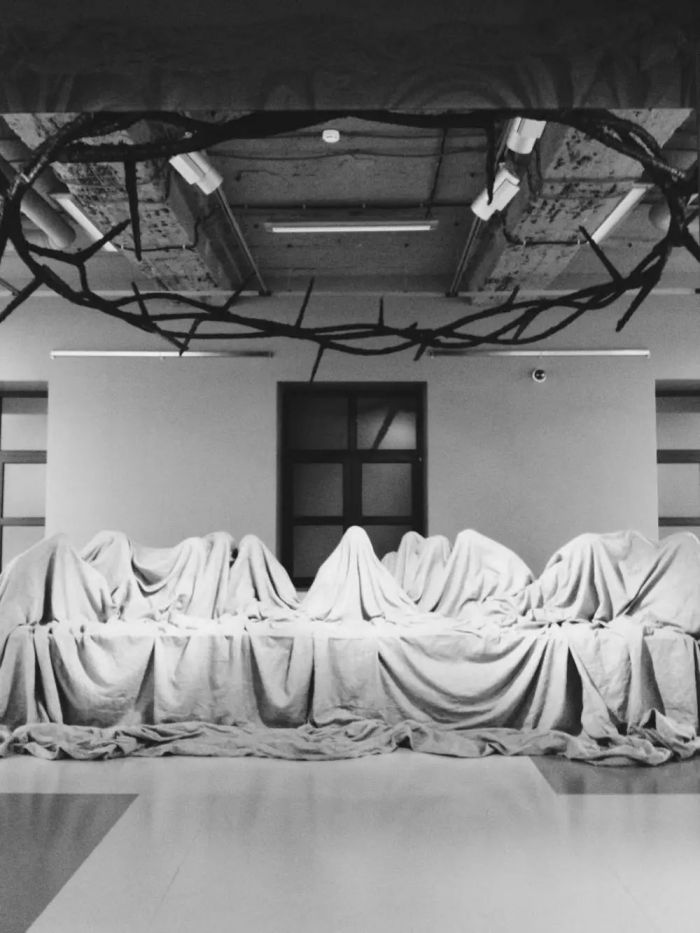 《最后的晚餐》,Pavel Grishin,2010,Erarta当代艺术博物馆 Pavel Grishin是来自俄罗斯的新兴当代艺术家,他同时熟悉古典训练,在各地的艺术机构中得到支持,以具有挑战性的方式表达他的艺术才华。 在俄罗斯,人们把这个圣经事件称为“秘密的夜晚。” Pavel Grishin真的把整个场景隐藏在布料下面。观者不能确定布料下面是什么样的角色,也无法确知表面上有什么东西。这引导人们进一步思索:“最后的晚餐”确实发生在人类历史上吗?我们实际上并没有任何有力的证据表明耶稣基督是一个真实的人。回答“是”或“否”,却成为“信徒”和“非信徒”之间的界限。 基督的形体、基督的制度、福音书的印刷……我们的世界充满了媒介。人们在不了解其性质的情况下使用它们:说话,写作,印刷,复制。每种媒介都会改变信息。意义隐藏在转译的面纱之下——失真是永恒的,沟通是不可能的。 编辑:职霆 |