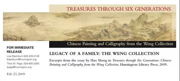 翁氏收藏书画展海报 对《长江万里图》,翁同龢视之若生命。他在卷尾跋曰:“余藏此画三十年,未敢亵以一字,遇通人逸士辄引同看,黄金横带者虽固请未以示也。今年四月,蒙恩放还,俶装之顷,有贵游欲以重金相易。余曰他物皆可,唯此画与麓台巨幅此生未忍弃也。比归里门,人事纷纭,资用空乏,暑郁蝨雷几不可耐,每北窗明处时一展卷,清风拂人,尘虑都净,世间神明固应尔耶。抑劳逸顿殊,身边两不相收,理然也。赵子固云:性命可轻,至宝是保,余尝自知为愚,若余者其愚耶?否耶?既自笑因书于后。光绪戊戌六月晦快雨初晴,病起手战,松禅居士同龢记。” “澎湃新闻”获悉,2008年12月,北京中华世纪坛世界艺术馆曾举办“翁同龢六代家藏书画精品首度归国展”,其中王翚的《长江万里图》长卷曾在现场展出。