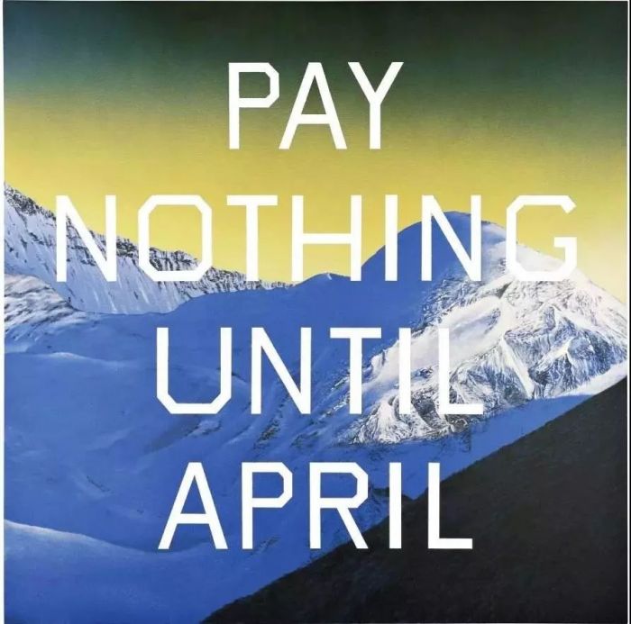 Pay Nothing Until April,2003 此外,埃德·拉斯查的作品也经常取材于生活中的场景,他的很多摄影作品素材都是美国的街道、城镇。尽管他否认自己的创作风格受到洛杉矶和南加州的文化影响,但这些城市中的艺术、书籍,甚至城市景观都在拉斯查的作品中留下了影子。洛杉矶的巨幅广告的呈现方式,略带喜剧色彩的喷绘涂鸦手法,都对拉斯查的作品有着深深的影响。