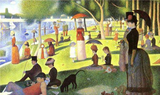 说到点彩画法,不得不提到的人物是法国印象派画家修拉,他的思维方式、创作方法,对后期印象派、野兽派、立体派,以及冷抽象都具有根本性的影响。