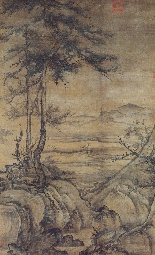 (传)李成的《乔松平远图》 日本澄怀堂美术馆藏 而(传)李成的《乔松平远图》表现的是冬日寒冽窠石坡陀上挺然生长着的长松老树,背后映衬平川远山,坡石壮如云头,送针细利,笔墨清润,树根部隐然可见李成款识,而傅申以为款识系后世添写,而且此画与郭熙《早春图》的画法有惊人的相似,加之郭熙为李成的学生,此图鲜明地显示了李成画风本色,应该为郭熙所画。对于李成的传世作品,早在北宋米芾生活的年代就有了“世间无李论”的说法,因而如今李成的绘画真迹是少之又少的。 ———————————— 延伸阅读 展品清单