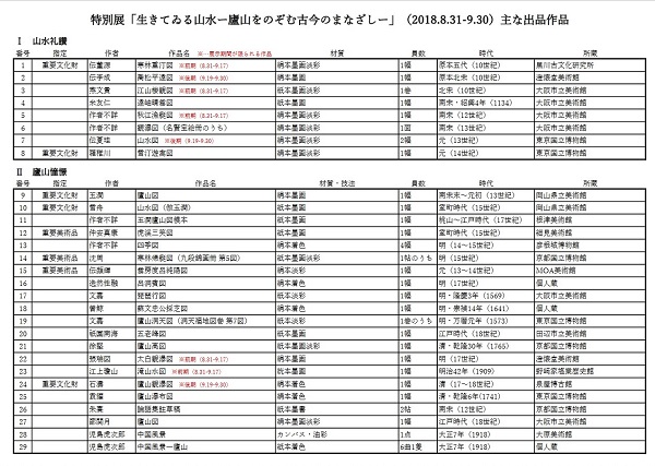 南宋玉涧《庐山图》,冈山县立美术馆藏 然而,从日本冈山县立美术馆给出的展品清单来看,一些重量级的展品所展出时间有所不同,分为前、后两期展出。即(传)董源的《寒林重汀图》、燕文贵的《江山楼观图卷》、佚名《秋江鱼艇图》、张瑞图的《 太白观瀑图》、江上琼山《滝山水图》的展览时间为8月31日至9月17日;传)李成的《乔松平远图》、(传)夏珪《山水图》、石涛《庐山观瀑图》 则为9月17日至9月30日展出。 在展览中,日本冈山县立美术馆以雪舟和浦上玉堂的馆藏为首选,且展示了与冈山县有所渊源之画家的水墨山水画,以及他们所憧憬学习的中国绘画作品。其中,1993年10月入藏的玉涧《庐山图》,可谓馆藏水墨山水画名品的代表,而同为馆藏的雪舟仿玉涧《山水图》(重要文化财产),则是自玉涧习得泼墨技法的作品,足见作品间有深厚的渊源关系。此外,庐山所在的江西省和冈山县于1992年缔结友好合作关系,25年来始终保持着相互交流。