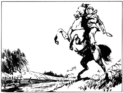 图12 还有必要指出,《战马驰骋》的主要看点应该是马,沈尧伊果真便把更多的笔墨挥霍于马的身上,他笔下的马当真是威武潇洒、豪气横溢,其静、卧、冲、跨、奔、闪等等无穷神态,他均能酣畅淋漓地予以表现(图4、图6至9)。待要回头细考之时,则又似无太多授受渊源,而竟也能遍压同侪,几与徐悲鸿争席。而且,我发觉沈尧伊画马,笔端似镌有特殊的情感印痕,反复将青鬃马的形象人格化(图2、4、5、图10至12)、动态化(图1、3、图6至9),透露出他对马所特具的忠诚、果敢、英勇、豪迈等优异品质的虔敬心理。由此,沈尧伊能够以自己的专长平衡多种艺术技巧,终于找到一种既与内容契合,又易于引起读者共鸣,同时也最能体现其个性和气质的艺术语言。此外,《战马驰骋》多取中、远景构图,这是否为了避开当时“高、大、全”的定式而采取的一种策略,就不得而知了。