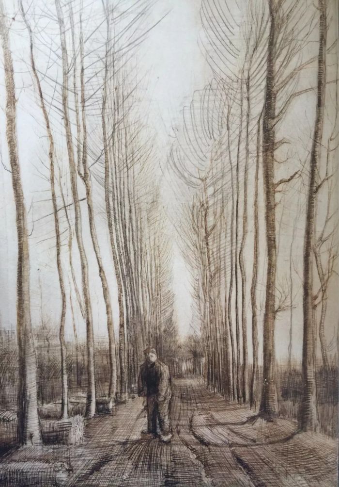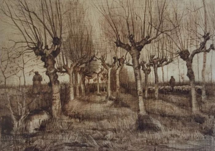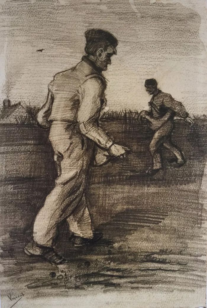 传教期间,梵·高常常将《圣经》中的故事和路上的风景画成图画,但直到 1880 年,他才放弃这份神职工作,去往布鲁塞尔接受艺术培训。 此后,梵·高没有离开过绘画。 1888 年,金钱成为了梵·高最大的压力,这使得他在初夏就开始越来越多的进行速写创作。“我刚给你寄了一卷墨水钢笔画,我想能有一打那么多。通过这些画你就会知道我一直都没有停止工作,虽然我已经暂停油画了。”他在信中对弟弟提奥说。