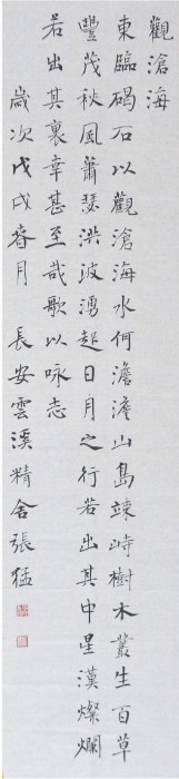 张猛,字乾凨,号抚剑堂主,西安市鄠邑区人。书风追求高古典雅,气息自然,率意大方,厚重朴拙。系全国公安书法家协会会员,陕西省书法家协会会员,陕西元博书法美学研究院研究员,鄠邑区书法家协会副秘书长,供职于西安市公安局高新分局。