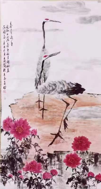 王利诚近来日夜锤炼自己的画风,并且书画双修。一幅幅初具自身面貌的作品,如《书法唐诗六屏》,画作《迎新》《春色永年》《报晓》《华山脚下喜事多》等一批新作,似古人、似先师,“旧瓶”里却是“新酒”,画出的是自己新时代精神的畅扬。
