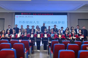 活动在学生表演的舞蹈《奔跑的青春》中拉开序幕,歌手刘薇娜的一曲《春风十万里》开场后,市职工文联作家协会主席白麟和宝一中高新分校执行校长罗江泉分别致辞,开启学校首届读书节活动。通过文艺演出、猜谜互动、文学讲座、赠送书籍、校园采风等形式,让建设“书香陈仓、文明宝鸡”的理念深入孩子们心中。 在朗诵环节,亚峰、尚玉虹、李亚君的诗朗诵《从今天开始,我们一起朗诵》《月光下的中国》《致春天》和宝一中学生的《少年正是读书时》相得益彰。文艺达人张宝文还现场与师生互动猜谜,将活动推向高潮。在文学讲座环节,陕西省最美女教师伊梅以《我手写我心,我的作文我做主》为题精心开讲,聚精会神的同学们认真聆听,纷纷笔记,还举手提问,现场气氛热烈。 市职工作协寇明虎、成文贤、胡宝林、张静、大唐飞花、张占勤、冯建伟、李明绪、薛娅、曹文军、宁国英,以及李晓峰、张根龙、武岐省等作家还向学校赠送了各自的文学作品,宝鸡万邦图书城总经理毛智英赠送近百本青少年读物。宝鸡市著名书法家李栋成、张宝文也向校方赠送墨宝,鼓励学子发奋读书、努力学习。歌手马丽亚一首《我和你》则为本次活动画上了圆满的句号。 仪式上,学校为各位作家、艺术家颁发了校文学社艺术顾问的聘书,期待大家为孩子们的成长助力加油。