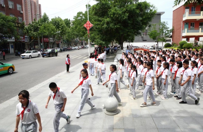 渭南市富平县频阳小学“两横一纵”护学岗 保畅通 来源:文化艺术网-文化艺术报 作者:高盼成 时间:2023-05-17