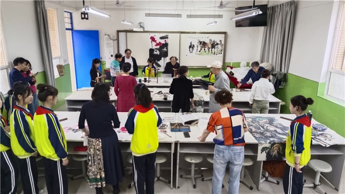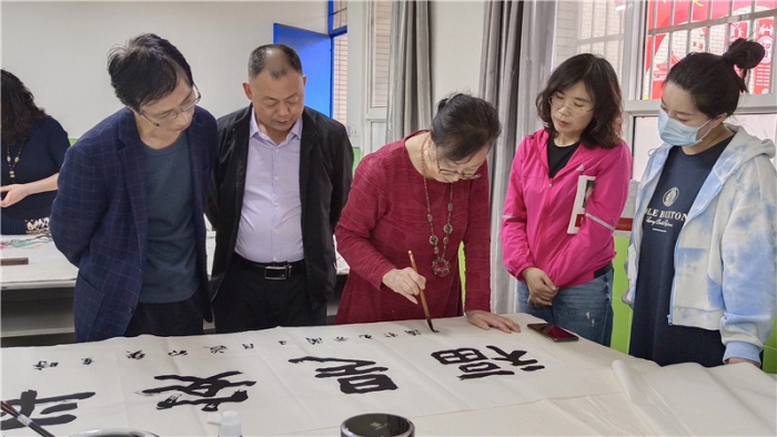 一笔一乾坤,一字一世界。在学校书画教室,书画家康智峰现场为学生们讲解和示范书法写作要领;书画家们挥毫泼墨,现场创作,充分展示出书画艺术的独特魅力,老师、学生们拿到作品后爱不释手。