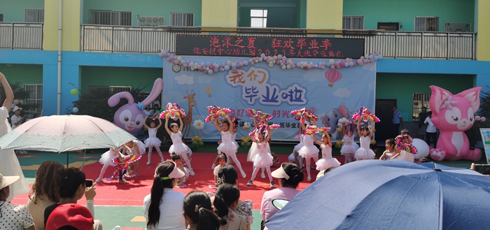 当天的活动分别有“升国旗仪式、走成长门、园长致辞、小朋友代表发言、教师代表讲话以及才艺表演”等环节。文艺演出中,师幼通过集体舞《孩子的天空》、舞台剧《美好的三年时光》(大一班)、舞蹈《亲子舞》(大三班)、情景剧(大二班)、舞蹈《我的梦想》(大一班)、教师舞蹈《声声慢》、舞蹈《送别》(大二班)、情景剧《幼儿园的三年》(大三班)等节目,让每个幼儿感受师生之情、同伴之情,萌生对小学生活的向往之情。