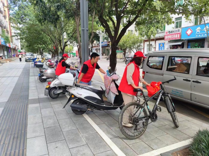 随后,又深入沿街商铺开展创文入户宣传、问卷调查、发放《创建全国文明城市,共建中国最美茶乡》倡议书,提升社区群众对全国文明城市创建的知晓率、参与率和支持率;最后,对街边摆放不规范的车辆进行整理,对遛狗不牵绳等不文明行为进行劝阻,还对莲花路人行道落叶、烟头、杂草等垃圾进行全面清理,进一步增强了社区居民的环保意识,践行了党员“我为群众办实事”这一理念,营造出“文明创建,人人参与”的创文宣传氛围。