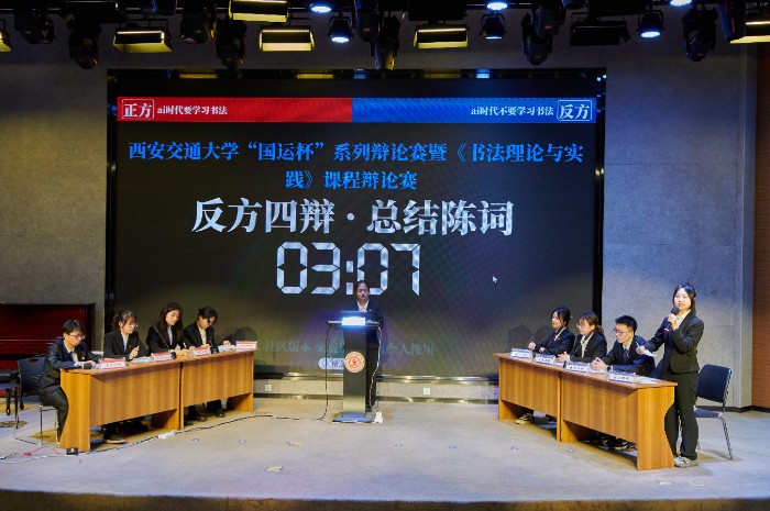 文化艺术网-文化艺术报讯 (全媒体记者 梁飞燕)5月10日晚,在西安交通大学丝路大讲堂1400教室,通识课《钢琴演奏表演艺术》与书法本科专业必修课《书法理论与实践》辩论赛顺利展开,正式拉开了西安交通大学第二届“国运杯”辩论赛初赛的序幕。来自西安交通大学人文学院《钢琴演奏表演艺术》《书法理论与实践》课程的18名同学组队,针对“音乐表演应该强调感情还是强调技法”和“AI时代要不要学习书法”辩题展开辩论。