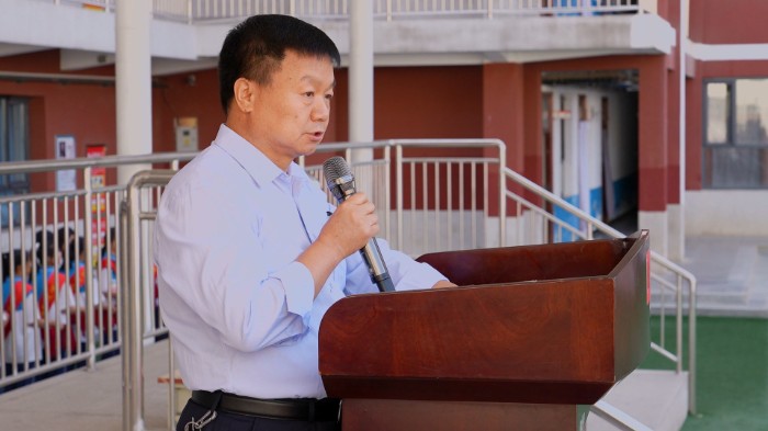 教师代表王娟的临别箴言满含温情与不舍,她分享了与同学们在课堂上的思维碰撞与生活中的点滴关怀,叮嘱毕业生们在未来的日子里,既要仰望星空追逐梦想,也要脚踏实地地稳步前行。 九年级(4)王浩学同学作为毕业生代表发言,她回忆了三年校园时光,用真挚的话语表达了对母校悉心培养的深深谢意、对恩师谆谆教诲的无限感激以及对同窗情谊的无比珍惜,她代表全体毕业生表示,将带着母校的期望,以更加昂扬的姿态迎接中考。