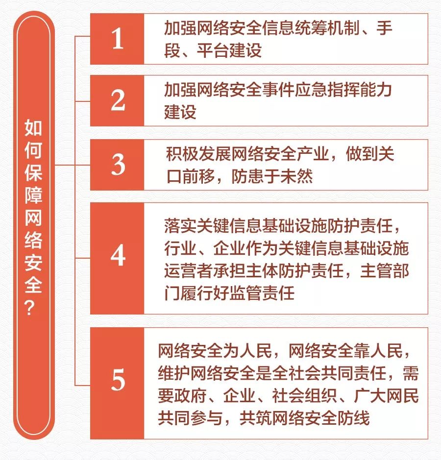 2、保障网络安全 没有网络安全就没有国家安全。如何保障网络安全?习近平给出了答案: