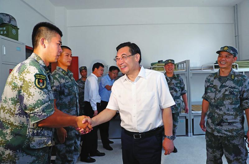 7月31日,省委书记胡和平来到驻陕部队某部看望慰问部队官兵。 记者 宋红梅摄 陕西日报讯 八一建军节到来之际,省委书记胡和平31日来到驻陕部队某部,看望慰问部队官兵,向驻陕解放军指战员、武警部队官兵、民兵预备役人员表示节日祝贺,向军队离退休老同志、革命伤残军人、转业退伍军人和烈军属致以诚挚问候,向驻陕部队为全省经济社会发展作出的贡献表示衷心感谢。 胡和平首先来到部队驻地操场,观摩官兵实战训练,登上车辆察看装备设施,询问技战术性能,了解部队建设情况。看到战士们个个技能娴熟、训练有素,胡和平十分高兴。他希望部队官兵深入学习贯彻习近平强军思想,坚决听从习主席指挥,聚焦备战打仗,练就过硬本领,以实际行动践行听党指挥、能打胜仗、作风优良的使命要求。 随后,胡和平走进官兵宿舍,与战士们座谈,一起拉家常。“老家是哪里的”“训练上、生活上有什么困难”,胡和平问得很仔细。胡和平说,陕西是双拥运动的发祥地,为部队备战打仗搞好服务是我们义不容辞的政治责任。近年来,驻陕部队积极参与全省维稳处突、抢险救灾等工作,为推动陕西追赶超越发挥了重要作用。各级党委、政府要认真贯彻落实习近平总书记要求,全力做好军转干部安置、随军家属就业、军人子女入学等服务保障工作,扎实推进涉军机构改革,不断巩固军政军民团结,为部队现代化建设当好坚强后盾。也希望部队一如既往支持陕西发展,为强军兴陕事业作出新的贡献。 编辑:慕瑜 |