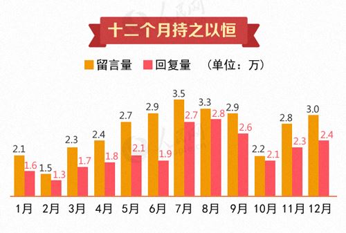 从月度数据来看,7月份网友留言热情最高,该月网友共留言3.5万项;各地回复网友留言的高峰出现在8月,总量达到2.8万项。