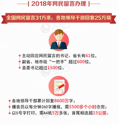 各地干部借助《地方领导留言板》一年回应网民诉求25万项 来源:人民网-地方领导 作者:韩月、杨伊、孙梅 时间:2019-01-14
