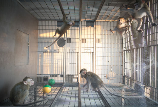 1月22日,在中科院神经科学研究所非人灵长类研究平台猴室拍摄的五只生物节律紊乱体细胞克隆猴的“父亲”。 编辑:慕瑜 |