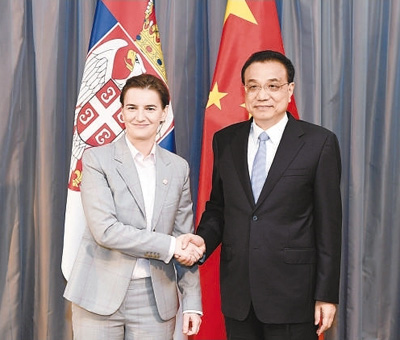当地时间4月11日下午,国务院总理李克强在杜布罗夫尼克会见出席中国—中东欧国家(“16+1”)领导人会晤的塞尔维亚总理布尔纳比奇。新华社记者 申 宏摄