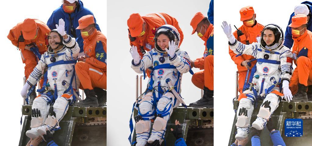 4月16日,神舟十三号载人飞船返回舱在东风着陆场成功着陆。这是航天员翟志刚、王亚平、叶光富(左至右)安全顺利出舱(拼版照片)。新华社发 神舟十三号载人飞船结束为期6个月的太空“出差”返回地球;天舟四号货运飞船飞赴太空;“华龙一号”示范工程全面建成投运等一系列创新成果竞相涌现;产业升级步稳蹄疾,高技术制造业增加值保持两位数高增长;创新链与产业链加快融合……今年以来,我国不断加快创新步伐。