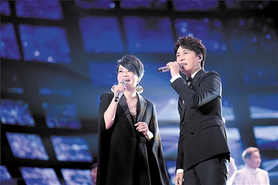 吴亦凡(左)和赵丽颖 江苏卫视: 视觉体验酷炫震撼 前晚,江苏卫视跨年演唱会在广州开演。晚会超过50个关键词登上热搜,吴亦凡、赵丽颖的合作持续“霸榜”,“江苏卫视跨年舞美”“吴亦凡特效”“李宇春零点大秀”等关键词也频频出现在社交媒体上。晚会的舞美、特效,让观众深感“震撼”“太美了”“再次拓展了我对演唱会舞美想象力的边界”。 去年江苏卫视跨年演唱会“鲸鱼出海”画面与AR现实增强技术让观众赞叹不已,今年的跨年演唱会在舞美、特效上则再秀科技力量:三个蓝色光能环向所有人输送潘玮柏的音乐能量;布满花纹的舞台仿佛晶莹剔透的美妙瓷器,《追光者》的一行行歌词接连涌现又随即烟消云散,汪苏泷仿佛踏歌而行;伴随吴亦凡出场的虚拟“神龙”,让吴亦凡化身“龙的传人”,其炫酷的出场方式,无疑成为今年跨年演唱会最让人难以忘怀的震撼场面。 演唱方面,唱匠们的真唱被认为是“秀出唱功的时刻”。李宗盛的《问》《我是真的爱你》穿越时光而来,张信哲在《不要对他说》里欲说还休,周华健的《忘忧草》《有没有一首歌让你想起我》让观众大叹“真是媲美CD的唱功”。当晚,乐评人“耳帝”在微博评价道:“周华健在江苏卫视跨年上演唱经典《有没有一首歌会让你想起我》,这现场功力令人服气,十几年后再唱这首歌,竟唱得如此摇滚!想必是嗓子唱开了,状态更加兴奋,唱得过瘾,听得享受,这就是经典的力量。” 此外,吴亦凡在《Deserve》《Juice》《B.M.》中的电音演绎与其独具一格的服装,“燃”爆微博热搜。 去年以300人舞团空降跨年的李宇春,今年再次携庞大舞团演绎新歌。炫目的舞台效果,加上李宇春接近完美的发挥,引燃全场热情。在场不少观众是第一次现场听李宇春唱新歌,纷纷直言“被惊艳到了”。