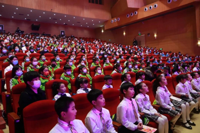 授牌仪式上,大家还一起观看了西安儿艺最新创排的儿童剧《遇见星海》。该剧以抗日战争时期的延安为背景,讲述了5名极具地域代表性的战争孤儿在与人民音乐家冼星海相知、相遇的过程中,接受音乐美育的熏陶,逐渐成长、成熟的故事。在整个剧目创排过程中,曲江的师生们曾受邀走进排练场,探班剧组,与演员互动,深刻地体验到了戏剧艺术的魅力。 “双减”政策实施以来,曲江各学校积极行动,通过提供课后服务,开展丰富多彩的体育、美育以及劳动教育等各类活动,促进学生全面健康成长。此次“戏剧进校园”活动,正是曲江教育落实国家“双减”政策的生动实践。