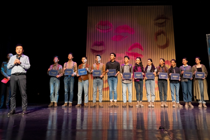 本届学员班于2021年4月面向社会和高校在校大学生招录,从200多名考生中录取了18位学员。经过一年半的培养,采取边学习边甄别的形式,淘汰6位,最终12位学员以教学成果汇报演出的形式圆满结业。汇报演出最后,陕西实验话剧院党支部书记、院长邓立鹏同志为12位学员颁发了结业证书。