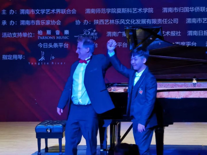 文化艺术网-文化艺术报迅(全媒体记者 高盼成 张颖)5月21晚,2023长江钢琴大师中国巡回音乐之旅马克西姆音乐会·渭南站于渭南师范学院成功举办。俄罗斯著名钢琴演奏家、美国新英格兰音乐学院钢琴系教授马克西姆·莫吉列夫斯基携手少年钢琴英才、首届拉赫玛尼诺夫国际青年钢琴比赛“特别奖-长江钢琴杰出钢琴家”获奖者李俊杰,以一场非同凡响的双钢琴音乐会,为渭南市广大音乐爱好者带来了一次丰富多彩的音乐之旅。