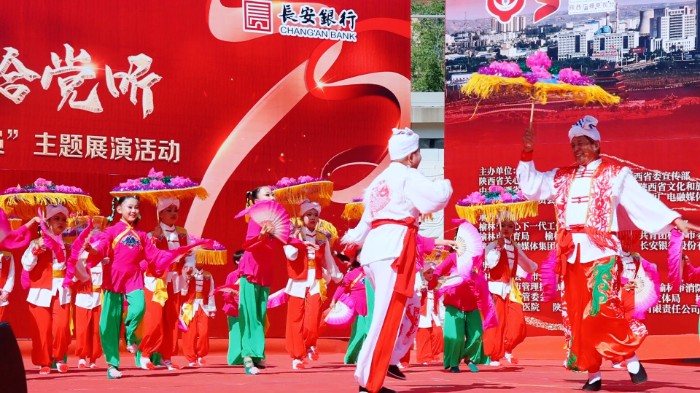 活动在歌伴舞《榆林欢迎你》中拉开帷幕,展演内容丰富,形式多样,11个家庭代表以合唱、朗诵、情景剧、歌伴舞等形式表达了真挚的爱党爱国情怀。虽然头顶烈日,户外气温高达29℃,但现场观众热情十分高涨,纷纷举起手里的国旗和演出人员齐声高唱《东方红》《唱支山歌给党听》《我和我的祖国》等红色经典歌曲,最后孩子们的一首《我们是共产主义接班人》将活动推向高潮。