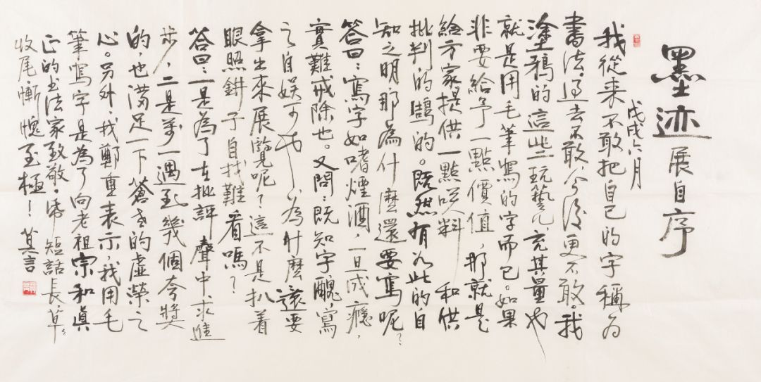 这个故事告诉我们,长期写字的人,他手上有一个尺寸,他一拿起笔来,就像我们骑车一样,你骗腿上了车子,不要去指挥腿怎样蹬车,你的脚和腿自动会去找这个脚蹬子的。他们拿起笔来,一切都在掌握之中,功夫下到了,基础打牢了。 ❸ “刻意求新易走偏, 突破往往在边缘。” 毫无疑问我们应该向古人学习,向先贤学习,向历史学习。在所有的艺术行当里,不管是文学、戏曲、美术、音乐,我们的祖先都留下了丰富的遗产,我们一生也不可能把先贤创造的东西全学会。在一个人有限的时间里面,学习什么,是有选择的。 一个搞书法的,要把历朝历代的书家都临一遍,那会把大部分时间都耗费掉。一个搞文学的,要把古代的所有的书都读一遍,那也要花费大量的功夫。 我就一直在想,学习传统,继承肯定不是最根本的目的。不让这个东西丢失,不让某种技法没有传人,这就是继承。但是最根本的还是创新。现在我们赞叹祖先给我们留下了这么多的艺术瑰宝,但是再过一百年,两百年,五百年,我们也是后人的祖先,那个时候我们的后代来谈论我们这一代的时候,假如我们仅仅把我们老祖宗留下来的东西保存的很好继承下来,后代会说我们的祖先很善于保管历史文物,但是他们没给我创造什么样的遗产。