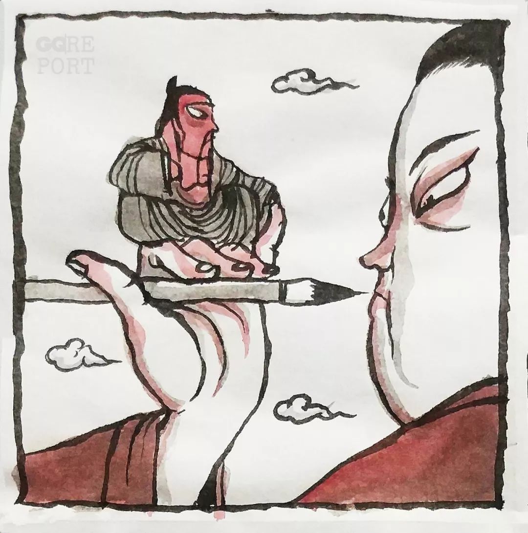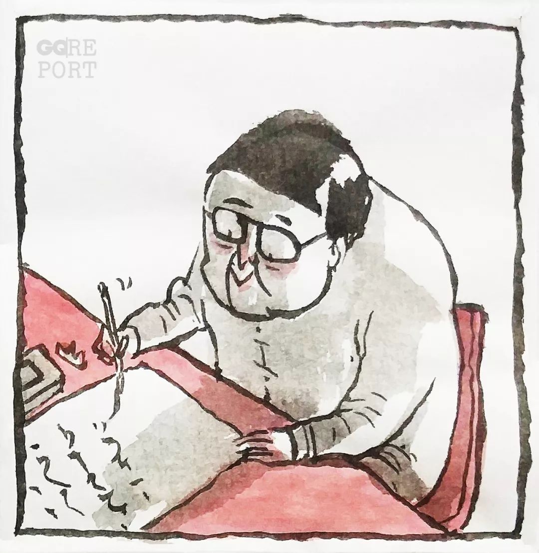 莫言写毛笔字有十几年了,但他总是不好意思称自己的作品是“书法”。朋友劝他,顶多练好20个字,要么是厚德载物,要么是宁静致远,要么是志在千里。出去题字就题这几个字,一是避免写错别字,二是避免写的难看,被别人笑话。 但就像写小说时被人批评离经叛道一样,莫言写毛笔字时,也不太听从外界的意见。他一边听着别人说,一边该怎么写还怎么写。前段时间,他开起了书法展,说自己一提起毛笔如嗜烟酒,实在难戒。 他觉得写毛笔字和写小说面临的困境是相似的——前人已经足够高大了,怎么谋活路?接受《智族GQ》采访时,莫言给出了自己的答案。 以下为莫言自述。 撰文/康路凯 书法作品/莫言 插画/明子 ❶ 见到纸笔手就发痒 写毛笔字是愉快的事情,一旦开始后,真是会像喝酒抽烟一样上瘾。我曾经写过四个字:见笔手痒。见到笔墨和纸,就按捺不住地想试一试。写字不是机械的劳动,也不仅仅一种实用性的工作,这是个充满趣味的创造性活动,高手笔下,可以产生出艺术作品。 我们现在能看到很多大作家笔迹,比如说鲁迅、茅盾、沈从文的手稿。看到他们的手稿,第一感觉这是文物,第二感觉这是艺术。我们能通过手稿和这个作家有一种精神交流。我们会被手稿上的一滴茶渍,一滴墨水,甚至撕去的那一角所触动。我们能看到编辑留下的红笔标记,排版工人使用油墨时留下的指纹,我们也可以在想象中还原这样的过程:作家写作,编辑校对、修改,工人排版,印刷,装订,整个的过程都可以通过手稿展示出来。 可是自从有了电脑,手稿没了,这些痕迹自然也就没有了。