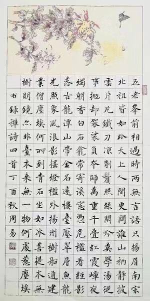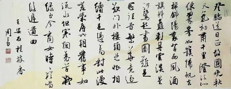 四 2010年,周易辞去了家乡的教师工作,为求书艺再上个台阶,只身来到了江苏昆山。在书法家王金春的热忱推荐下入“昆山书画院”任书法老师。 自他背井离乡至2012年底的那个时段,或可称是周易人生中最灰暗低迷的日子,接连投稿出去的二十几件参赛作品,皆石沉大海,杳无音讯。他为此绝望地痛苦着,无声地期待着。然而,荏苒的时光并未带给他任何利好资讯。庆幸的是,他比较有定力,没就此消沉颓堕。坚毅的人不会轻易认输,只有懦弱的人才会随便趴下。周易自然属于前者。 痛定思痛。他再一次认真反省起自己来。扪心自问,他学书的经历也确实不算短了,冷板凳上度过春秋迎来寒暑,一年复一年,屁股都快坐出老茧了,可为什么屡投不中?这些年里,他遍临了名家的帖子,有的几乎都让他临摹烂了,然而冷静推敲思辨,他发现自己充其量只是临其形,而未汲取其精髓绽放其神韵,缺乏自我的元素,没能融会贯通,尚处于学书的初级阶段,离登堂入室相距甚远。 一个书法家与写字匠的最本质区别,就在于此。 凡事识者为智,悟者为慧。有悟,脚下眼前皆灵山。周易找到了问题的症结,也就摸准了攻克难关的脉象,继而采取行之有效的对策加以改善。 丁酉年仲夏,他抛下妻儿,丢开俗事,静心聚神一周时日,自掏腰包花费两万多元,专程赴北京研修深造,与国内诸多名家交流学书体悟,切磋书法技艺,受益颇多,对他提升书艺水准起到了不可估量的作用。 他一改以往单纯抄书的坏习气,开始反复研读帖子,不仅烂熟每个字的构架布局,更领悟出了氤氲其间的意韵魅力,学会了用脑子与古帖神交意会。人,若能客观理性地正视自我,某种意义上,他已跨出了前行的步履。这是一次可贵的蜕变,更是一次质的飞跃。 采访中,周易淡然地告诉我,从北京回来数日后,他曾亲手撕掉了许多以前的作品,撕得那么义无反顾,撕得那么决然绝然。 纷繁的点与线,于常人眼里是那么的枯燥乏味、阒寂无趣,可在周易视野中,是那么具有诗意和灵气,因而在无数次提笔扭腕进行点与线的运动变幻中,他气沉丹田,凝神屏息,思聚笔端,格外观照字与字之间意韵的契合与气势的贯通,力求浑然一体,妙趣天成,久而久之,他终悟得真谛,且愈加得心应手,使作品渐入佳境,气象推陈出新。 2013年夏,周易凭借行书册页,一路过关斩将,广博评委赞誉,非常幸运地获得了中国书协举办的“第七届新人书法展”最高奖。捷报传来,周易流下喜悦的泪水。次年初,他顺利加入了中国书法家协会,圆了多年的夙愿。尔后,他相继14次入选全国书法展,并获得了第二届“江苏书法奖”最高奖的殊荣。 习书是孤冷、清寂之道,周易疏离红尘,寄情翰墨,二十余载初心不改,虔诚守望,终功不唐捐,玉汝于成。 纵使我揣摩不出周易在追梦的旅程中,究竟熬了多少夜,磨秃了几多笔,但我始终坚信,光环是由夜色凝结而成的,荣誉是用血汗锻制出来的:书山有路勤为径,学海无涯苦作舟。 五 艺无止境。山外有山。 一个成熟的艺术家是从不会满足于已有的成就、固步自封的,当他伫立于一个新的起点上时,其实早已在酝酿下一个攀登的目标。跋涉者永远不可能停歇求索的脚步,因为他们深谙,唯有在不断否定自我的螺旋形上升中,才能实现超越自己,战胜自己,从而一步步登临巅顶、窥见艺术之峰的绮丽景观。