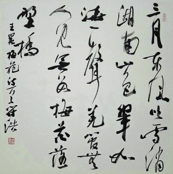 唐代窦叔向诗 符浩是一位勤奋、聪明、有才情的年轻书家,也是宝鸡书坛70后书家中的代表人物。他为人谦虚朴实,敏而好学,对书法线条的领悟力极强。能恪守传统,独持己见。这一代人受商品经济社会的影响大一些,能钟情于书法已属难能可贵,持之以恒学有所成者为数不多,尤其是作品能屡屡入国展更属不易!“书法自古无成规,妙得神韵即大成”。因此,符浩的成功绝非偶然,源于他长期不懈的刻苦实践和厚积薄发的艺术才情。他的作品气势豪迈,风神潇洒,于灵动中见朴拙,在挥洒中显雅致,酣畅淋漓,让人神清气爽。如果借用古人的话就是“出新意于法度之中,寄妙理于豪放之外”。