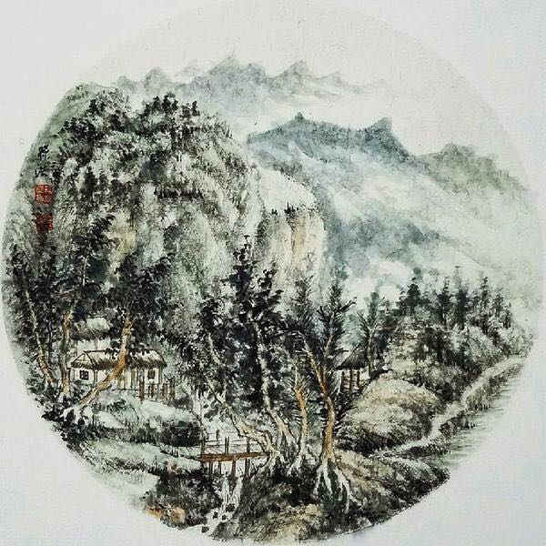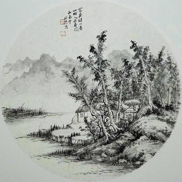 唐代王维诗 去年开始,符浩又埋头于国画山水的学习,在中国美院进修,对沈周、石涛等古代画家的作品情有独钟。虽属初涉画功还显稚嫩,但笔情墨趣跃然可观。自古书画同源,我相信他有良好的书法造诣,如果假以时日国画也一定能有所成就。