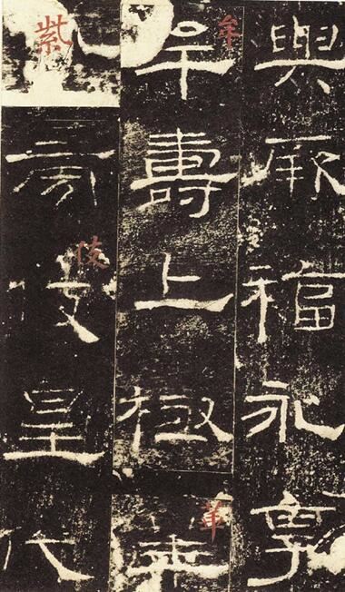 礼器碑 局部《礼器碑》历来为古人所推崇,(明)郭宗昌《金石史》说:“汉隶当以《孔庙礼器碑》为第一”“其字画之妙,非笔非手,古雅无前,若得之神功,非由人造,所谓‘星流电转,纤逾植发’尚未足形容也。汉诸碑结体命意,皆可仿佛,独此碑如河汉,可望不可即也。”
