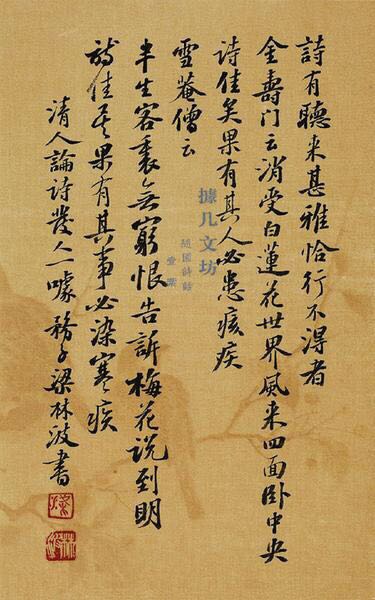 个人简介: 梁林波,1972年4月生。陕西扶风人,现居西安。中国书法家协会会员,陕西省书法家协会理事,陕西省青年书法家协会副主席兼秘书长。 作品参展: 全国第八届书法篆刻展 纪念邓小平诞辰百年全国大型书法篆刻展(获奖提名) 全国首届青年书法篆刻展 全国第二届扇面书法大展 首届全国行书大展(三等奖) 全国第九届书法篆刻展 “名家系统工程”全国千人千作书法大展 作品赏析: