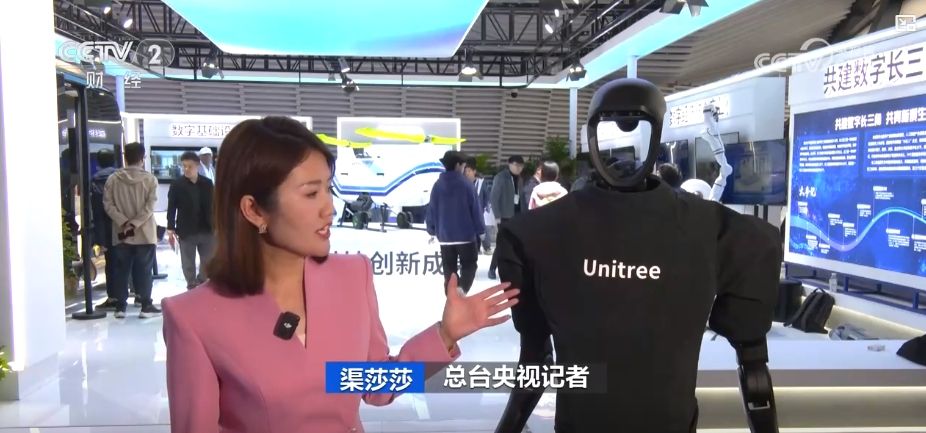 总台央视记者 渠莎莎:这款来自中国科技公司的人形机器人,身高1.8米、体重约47公斤。其实我之前在不少海外科技博主的视频中都看到过它的身影,它能够在各种复杂地形和环境中行走,奔跑速度更是高达每秒3.3米,刷新了全尺寸人形机器人移动速度的世界纪录。 人形机器人加速“进化”,背后离不开AI这个“驱动器”。目前这款人形机器人已在汽车工厂进行搬运等工作,未来也将拓展其更多应用场景。在人形机器人的展厅,一只可以倒立的机器狗也吸引了很多人的目光,跟大个子人形机器人一样,它的灵活性和稳定性极强。 展商:这款机器狗是一个消费级的产品,它主要用于电力巡检、消防救援、物资搬运等方面。