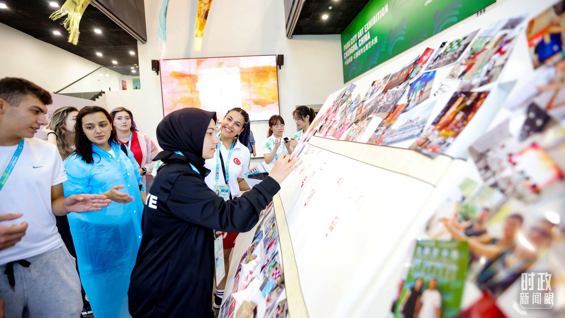 △各国青年运动员正在参观成都大运村内的“雪山下的公园城市,烟火里的幸福成都”主题艺术展。(总台央视记者魏帮军拍摄) 02 是体育盛会,也是主场外交 重大国际体育赛事,往往也是主场外交的重要时机。 从2014年南京第二届夏季青年奥林匹克运动会、2015年北京国际田联世界田径锦标赛,到2019年第七届世界军人运动会、2022年北京第二十四届冬季奥林匹克运动会,习近平主席都出席开幕式,并同来华出席开幕式的外方领导人举行系列外事活动。