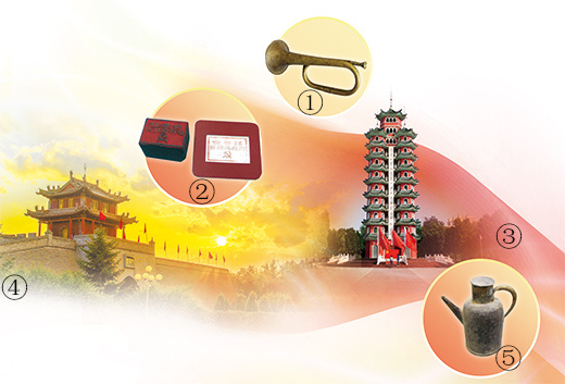 图①:老红军李克玉的小军号。图②:会宁县苏维埃政府印章。图③:红军会宁会师旧址的会师塔。图④:会师旧址的会师楼。图⑤:彭德怀留在会宁当地的铜水壶。资料照片 编辑:慕瑜相关推荐: