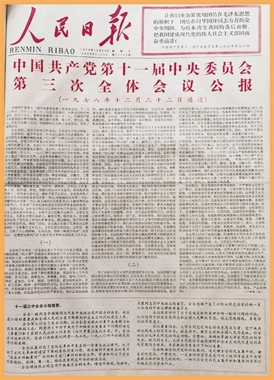 1978年12月24日,《人民日报》第一版刊发党的十一届三中全会公报。资料照片
