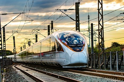 17辆编组超长复兴号列车在环行铁道进行型式试验。 刘家豪 摄(光明图片)
