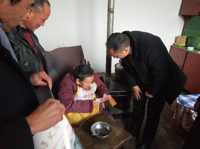镇组织委员陈志勇为困难群众和困难老党员送去年画和慰问金,并送去党和政府对他们的祝福和关心,鼓励他们老有所为,老有所乐。
